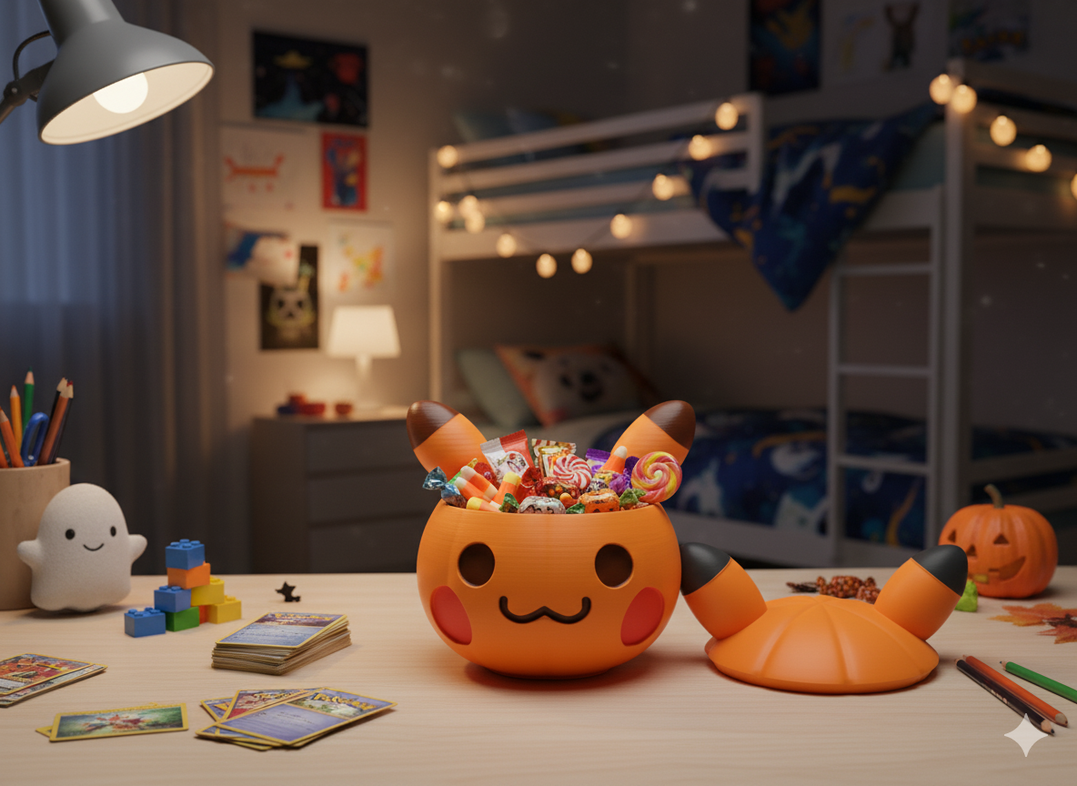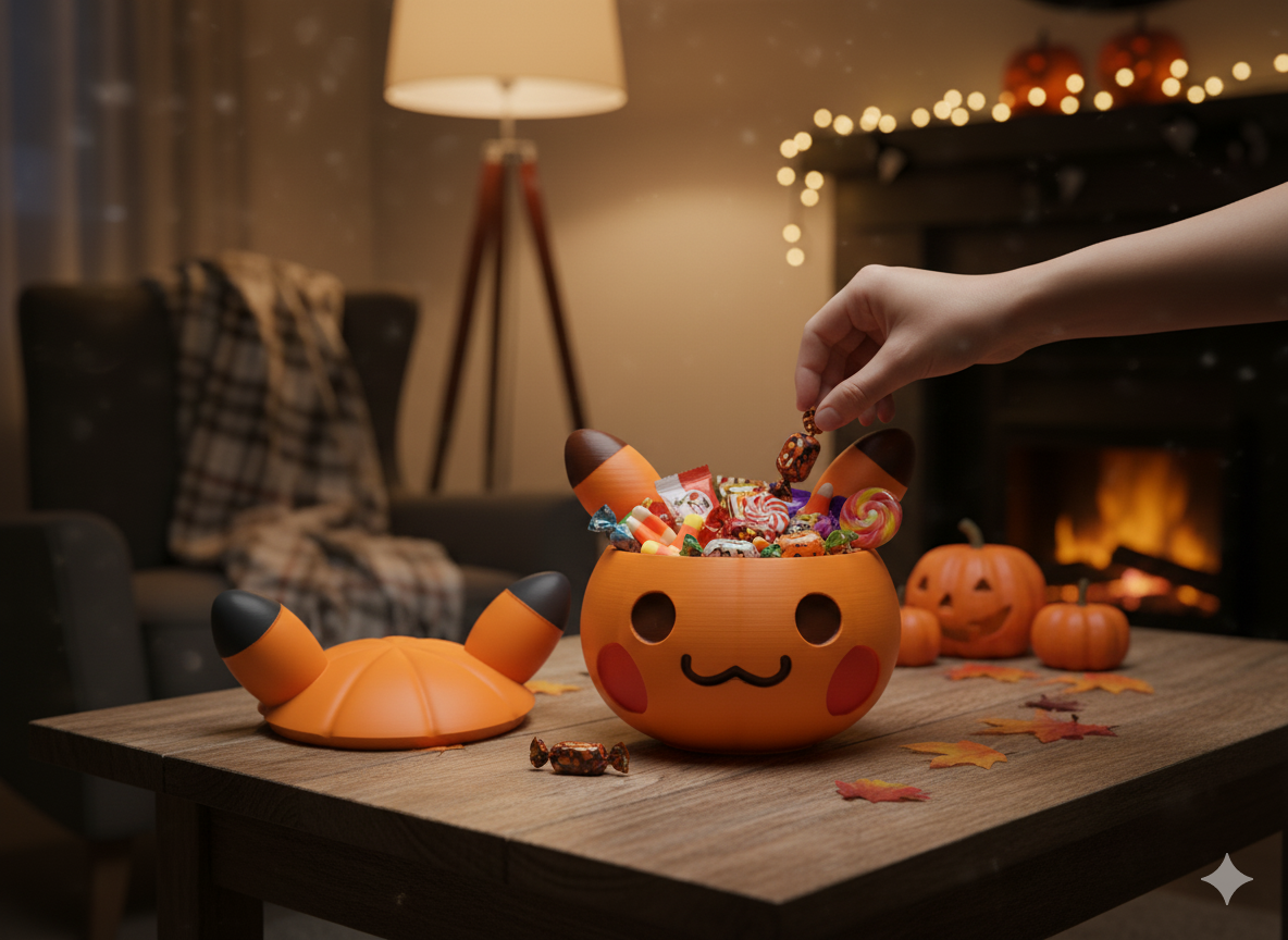 Get ready for the cutest Halloween ever with the Pumpkin Pikachu Halloween Candy Bowl! This adorable 3D-printed bowl blends the spooky fun of a jack-o'-lantern with the electric charm of everyone's favorite Pokémon. It's the perfect way to hold treats for trick-or-treaters or to brighten up your desk, adding a playful, nostalgic touch to any room. Gotta catch 'em all... and fill them with candy!